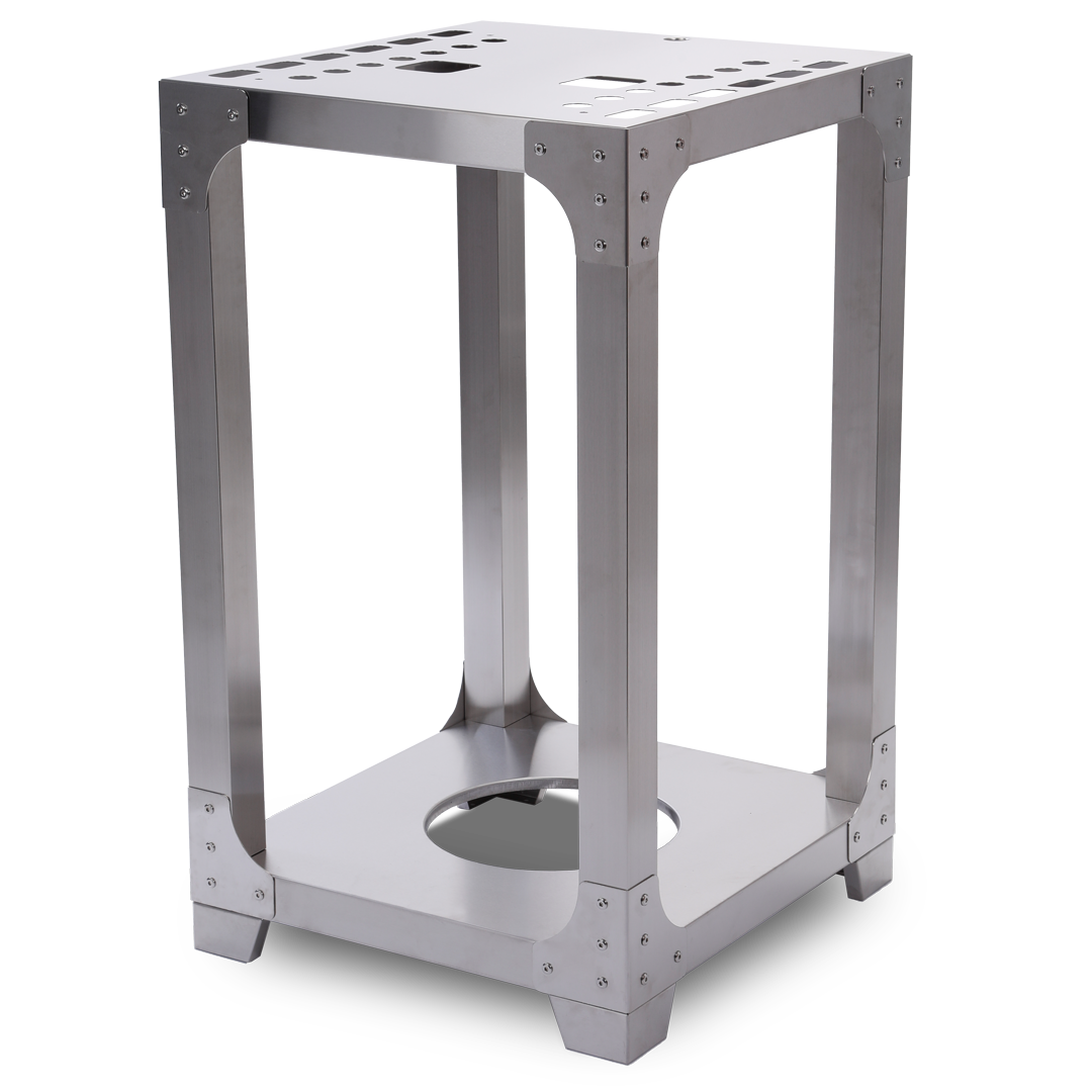 Ugnsstativet är gjort helt i Rostfritt i kvaliteen SS304. Det kommer hålla under överskådlig tid. Inga svetsar finnes.