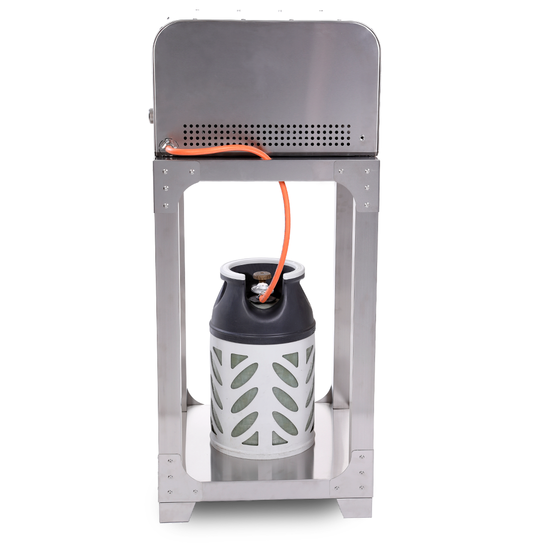 Stativet har ett utrymme var man stabilt kan placera gasolflaskan.